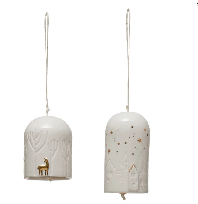 PORCELAIN BELL ORNAMENTS WITH DEER/SET OF 2