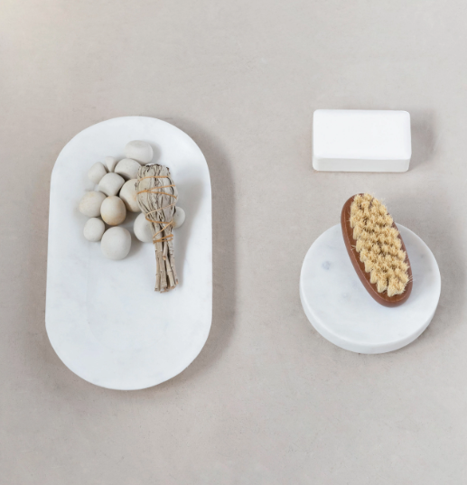 10-3/4"L x 5-1/4"W Oval Marble Tray, White