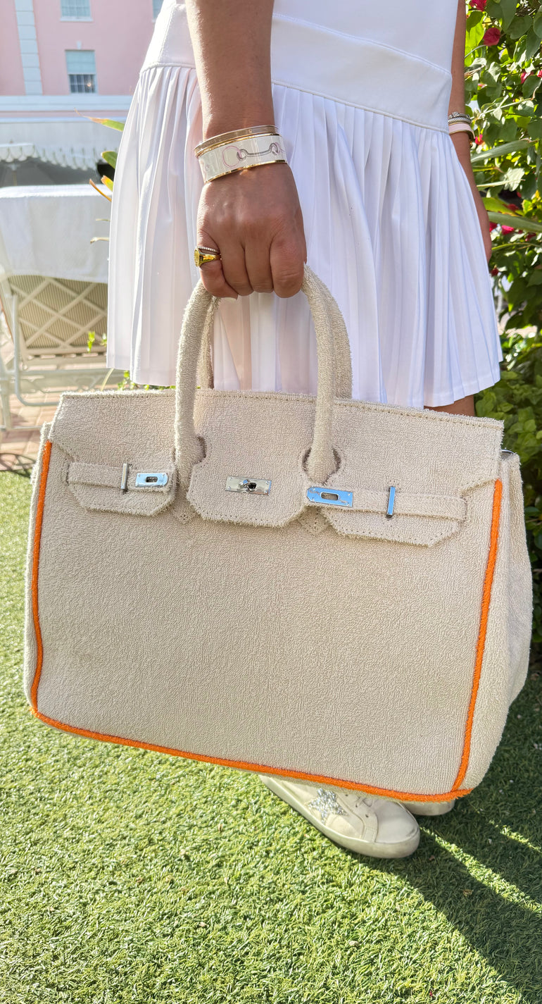 Look classy and chic on the beach with our South Hampton's Terry cloth Designer Inspired Tote Bag.