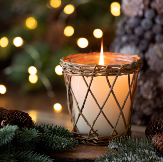 Transform your home with scents for the Holiday.  These hand-poured soy-based wax blend are infused with natural essential oils and comes in a willow container.  Each 4.75" x 5" glass container offers over 40 hours of burn time, bringing a luxurious and long-lasting aroma to any occasion. Elevate your senses this holiday season.