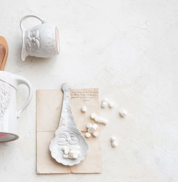 Stoneware Santa Shaped Spoon Rest, Reactive Glaze, White (Each One Will Vary)