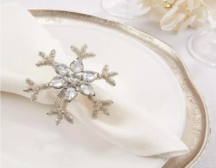 Add Christmas magic to your table setting with these Silver Beaded Snowflake Napkin Rings this holiday season.