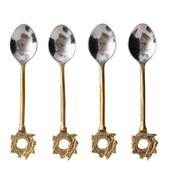 WREATH APPETIZER BRASS SPOON (SET OF 4)