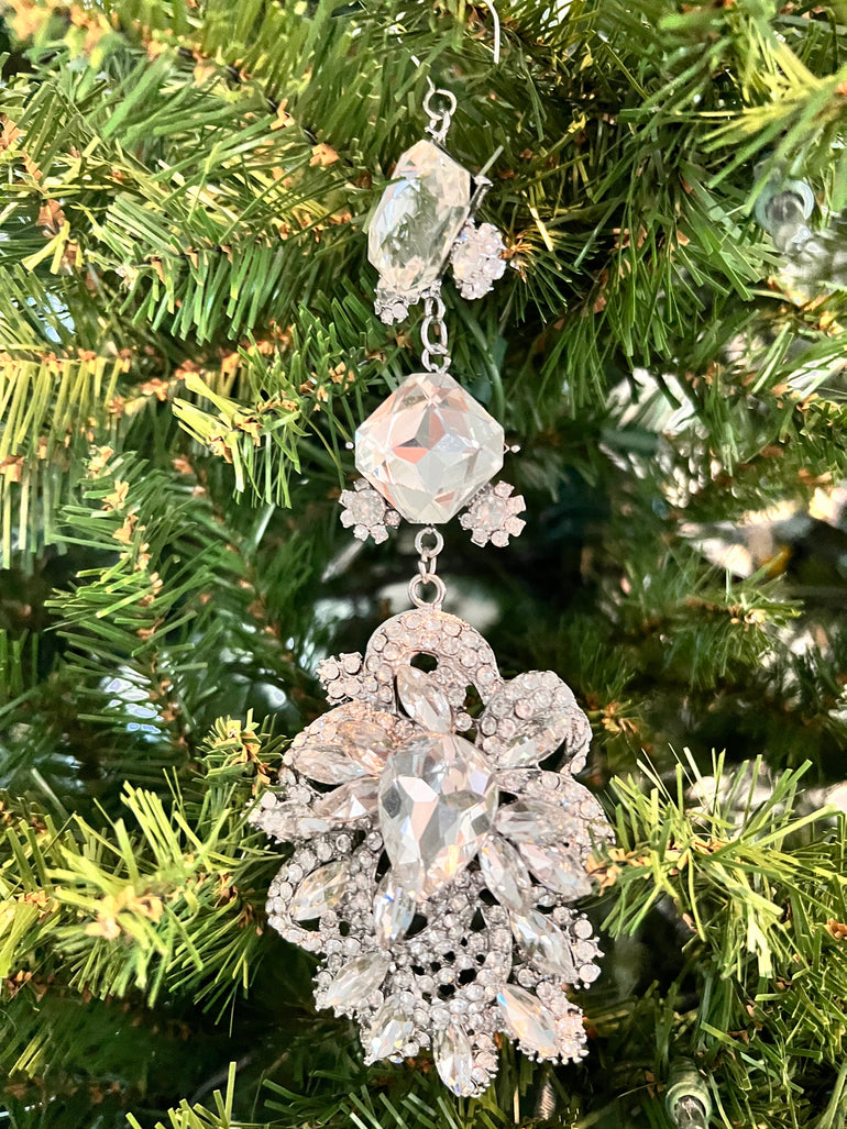 6" princess cut, pear shape crystals Christmas ornament, clear-silver