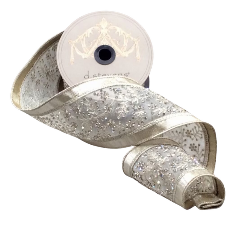 Metallic Dupioni Clear Jeweled Ribbon - 4"